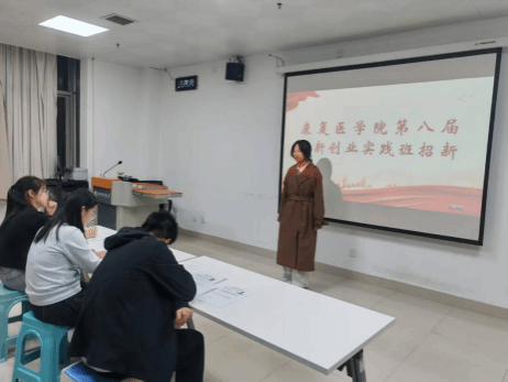 招新面试现场气氛热烈而有序。同学们结合康复医学专业特色,围绕“健康中国”战略、中医药传承创新、智能康复设备研发、社区康复模式探索、康养产业创业等主题,阐述了自己的初步构想或已有项目思路,展现了康复学子立足专业、关注社会、勇于探索的时代担当。面试评委由学院创新创业导师代表、往届实践班优秀成员及校外创业实践专家共同组成,他们从创新性、可行性、专业关联度及团队协作能力等多维度对报名者进行综合考察与提问,不仅注重创意的火花,更关注其落地转化的潜力与实践的诚意。
