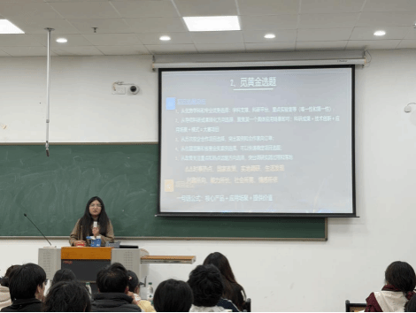在经验分享环节,会议特邀河南省第十七届“挑战杯”大学生课外学术科技作品竞赛省级特等奖获得者、我院优秀学生宋贺颖进行专题分享。宋贺颖同学结合自身参赛经历,从团队组建凝聚、选题立项策略、项目打磨深化到最终的路演展示技巧,系统而生动地分享了其团队的实战经验与心路历程。她提到,创新的源泉在于对现实需求的敏锐洞察,创业的基石在于团队的紧密协作与坚持不懈。其真诚而详实的讲述,为在场同学提供了宝贵的借鉴,也极大地鼓舞了大家投身双创实践的信心与热情。