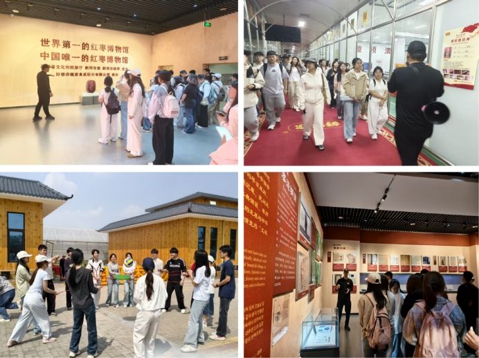 上午9时,研学活动开营仪式在基地庄重举行。基地导师向同学们介绍了研学行程、安全规范与活动意义,鼓励大家用心观察、动手实践、积极交流,在体验中学习,在实践中成长。简短而富有仪式感的开营环节,让全体同学迅速进入研学状态,以饱满热情开启一天的实践之旅。在中华枣文化博物馆内,同学们沿着历史脉络,系统学习红枣八千年种植历史、文化典故、民俗传统与药用价值,深入了解红枣从古代农耕作物到现代健康食品的发展历程。作为中医药院校学子,大家格外关注红枣在食疗养生、传统保健中的应用知识,结合专业所学展开交流思考,进一步加深了对中华传统养生文化的理解与认同,也让中医药文化与地方特色物产在实践课堂中实现有机结合。